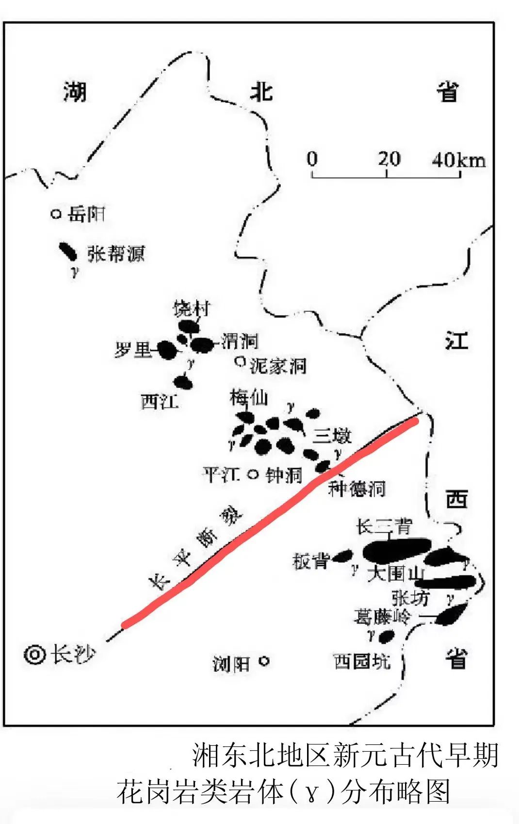 下图表明大围山处于湖南雪峰岩浆岩区(又称雪峰弧)。