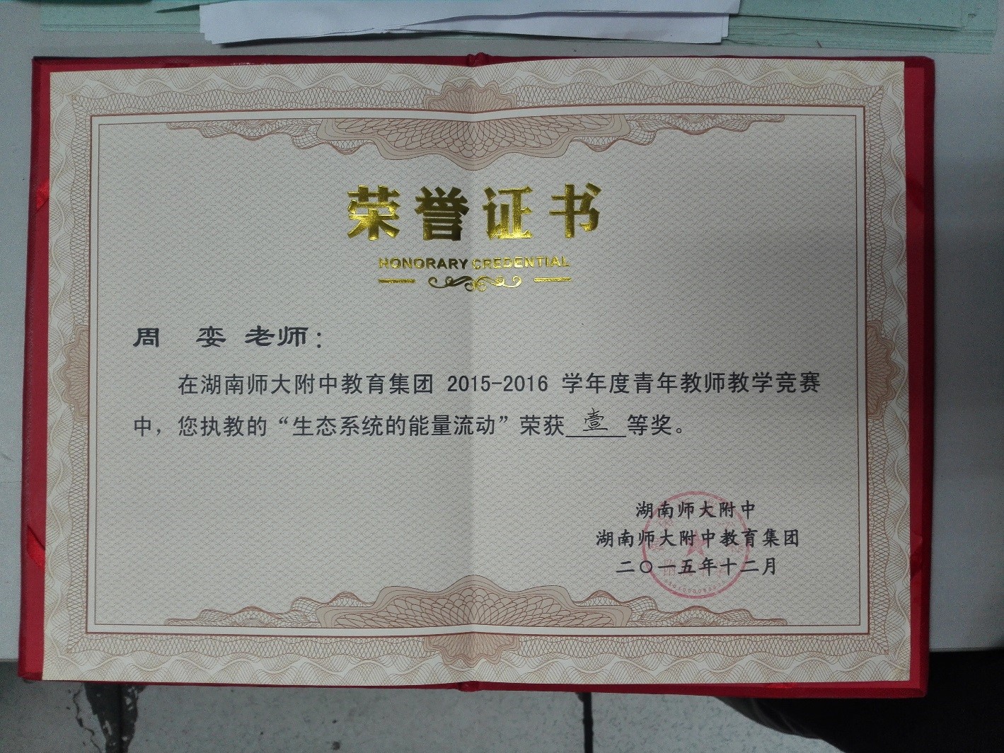 周娈老师荣获湖南师大附中教育集团首届青年教师教学竞赛一等奖