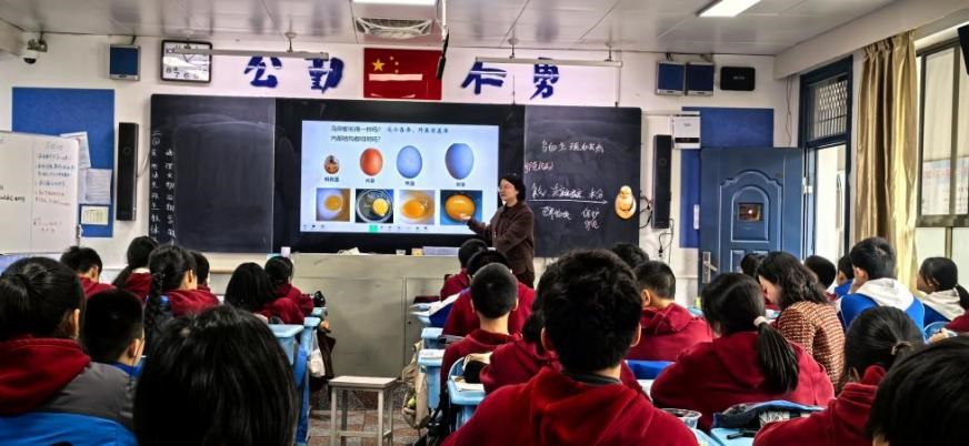 胡老师课前布置学生孵小鸡的活动,引导学生探究孵小鸡的条件。课中指导学生小组合作观察鸡卵的各个结构,分析鸡卵各结构特点。结合观察实验,指导学生自主学习,分析鸡卵各结构在孵小鸡过程提供的条件。最后回归到学生课前设计的孵小鸡的装置,并运用所学内容改进孵化装置,引导学生课后尝试利用自己设计的孵化装置来孵小鸡。本课程内容来自于教材,设计来源于生活实践。从实践中发现问题,通过课中探究解决问题,将课中所学内容应用到生产实践中去是本节课的亮点。