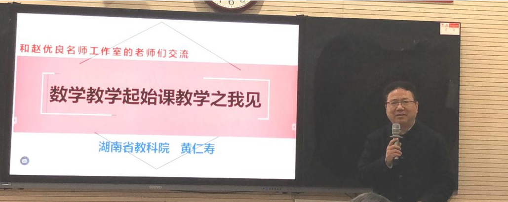 在几位专家精彩的点评后,湖南省教科院数学研究室副主任黄仁寿教授根据本次论坛相关主题,为大家作了题为《数学教学起始课教学之我见》的微讲座。
