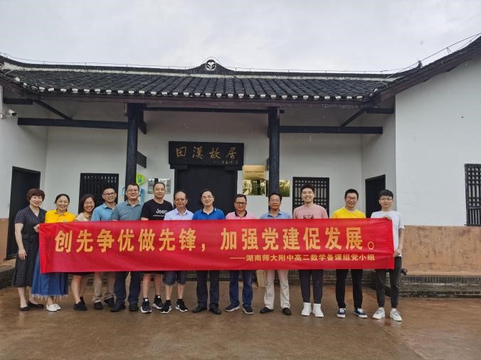 为庆祝中国共产党成立100周年,传承党的红色基因、弘扬爱国主义精神,2021年6月30日下午,湖南师大附中高二数学备课组全体教师乘车来到湖南省爱国主义教育基地——田汉故居,开展主题党日活动。