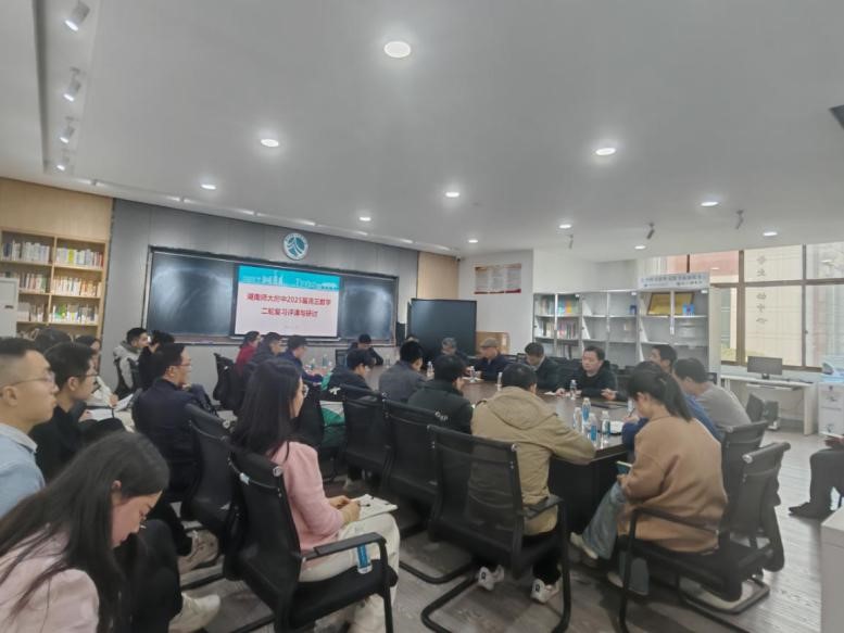 课堂展示结束后,所有老师来到图书馆二楼教师研修室进行评课研讨,评课环节由教学指导委员会主任彭知文老师主持。苏建祥副校长首先发表了讲话,强调了二轮复习的重要性,并对两位老师的课堂展示给予了高度评价。尹明老师和杨旭东老师随后分别阐述了自己的备课思路与教学设计亮点,分享了他们在教学过程中的心得体会。之后高三备课组长张天平老师、学术委员会主任赵优良老师、试题研究员吴浩老师,教学指导专家黄仁寿教授、昌国良教授,教研组组长汤礼达老师、教学处主任陈淼君老师先后对两堂课进行了精彩点评,从教学内容、教学方法、课堂互动等多个角度进行了深入分析,既肯定了两位老师的教学亮点,也提出了宝贵的改进建议,为后续教学与备考指明了方向.