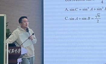 杨旭东老师以《灵光一现,豁然开朗》为题,聚焦高考解三角形高频题型,从题干分析、边角互化、先猜后证、特殊值法,通过个人尝试到方法优化,体验由难到易的方法变化,凸显特殊值法在客观题解题中的特殊地位。