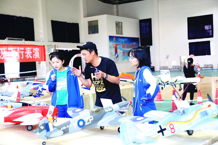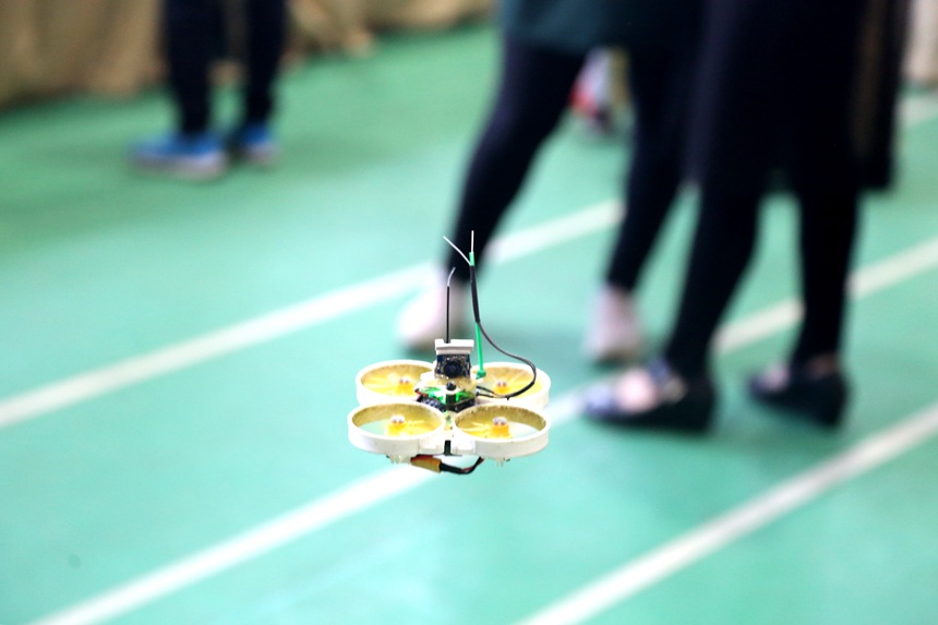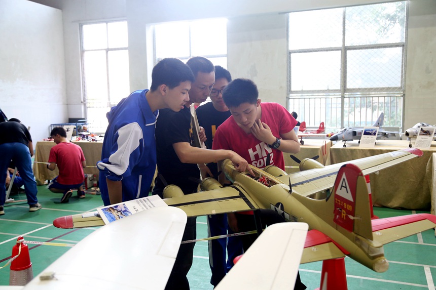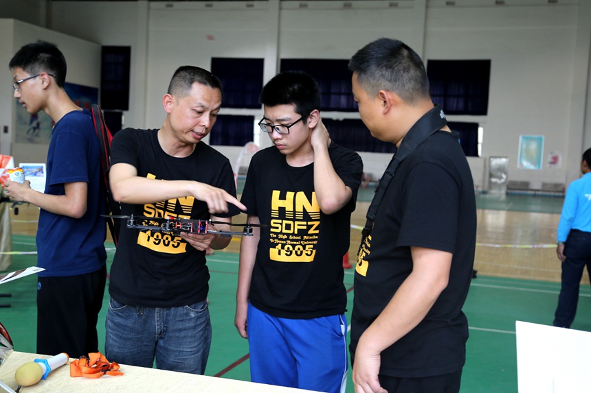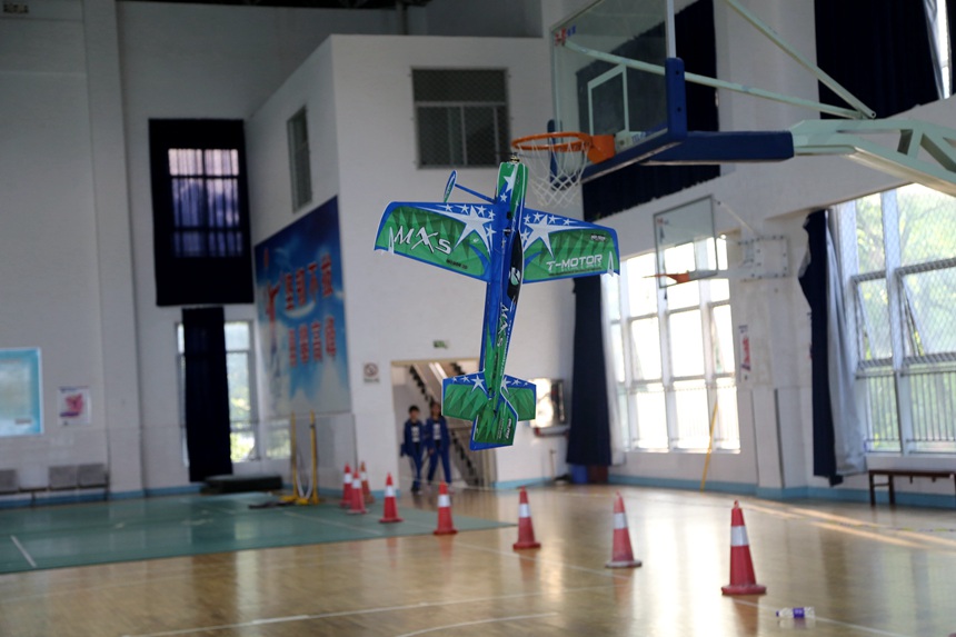 活动开始,马顺存老师介绍活动现场的模型展示区、模拟飞行体验区、飞行表演区三个区域 。接着由郭军、突突为大家讲解固定翼飞机模型的构造,飞行原理, 大志、海涛为大家讲解模拟飞行及体验,许浩宇等人为大家讲解多旋翼竞速赛事,让学生科普航模知识,互动体验模拟飞行等活动。之后,由吴鑫、许浩宇等为大家进行固定翼飞行表演,胡杰、海涛等为大家进行F3P花式固定翼室内飞行表演,突突为大家进行室内鲨鱼飞行表演将活动推到了高潮。这一系列活动场面震撼,师生热烈参与其中,直观的了解科学,学习科学,激发了广大学生探索科学的热情,催生了为科学勇攀高峰的拼搏精神。