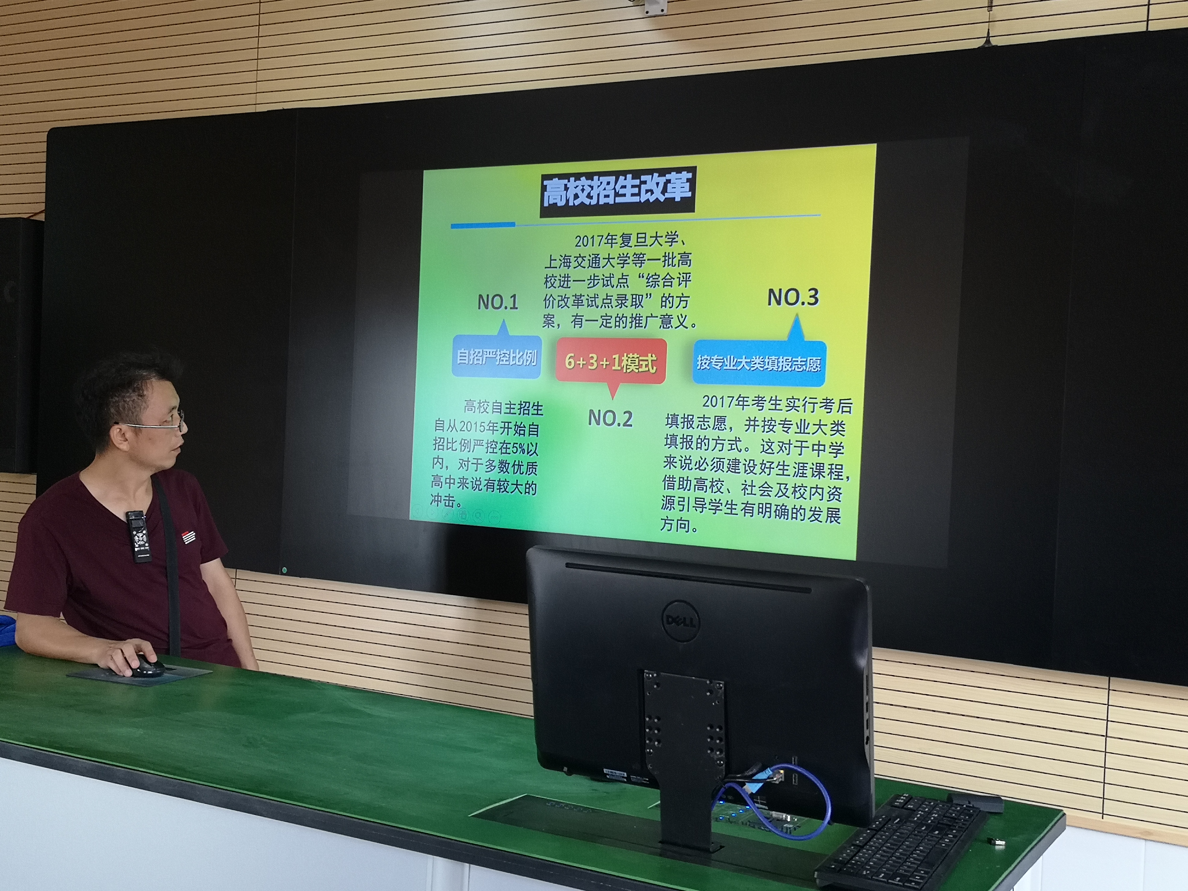 接着,杨飞老师就暑假国培计划(2018)湖南新高考教师团队高端研修班(A120湖南师大附中专项)进行了培训汇报。杨老师介绍了培训班上知名学者关于核心素养、新高考课程计划与设置、有效课堂教学等方面的先进观点与感悟,大家受益匪浅。