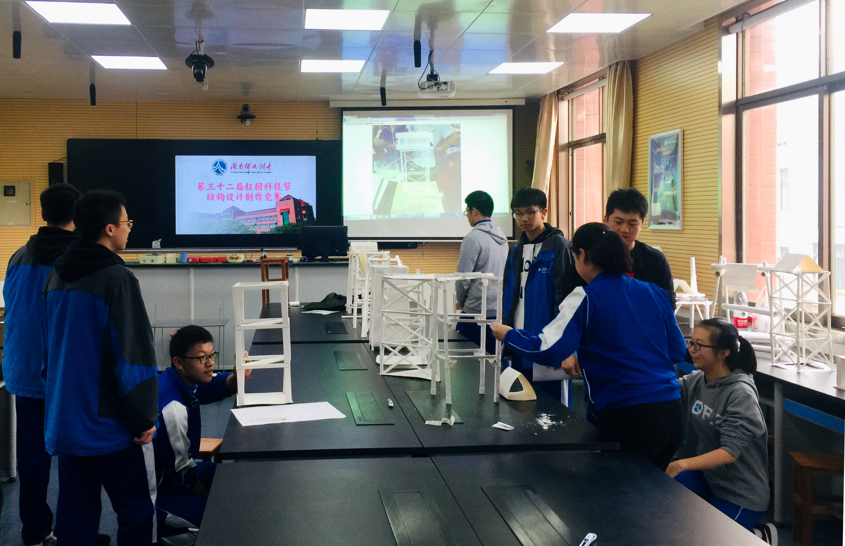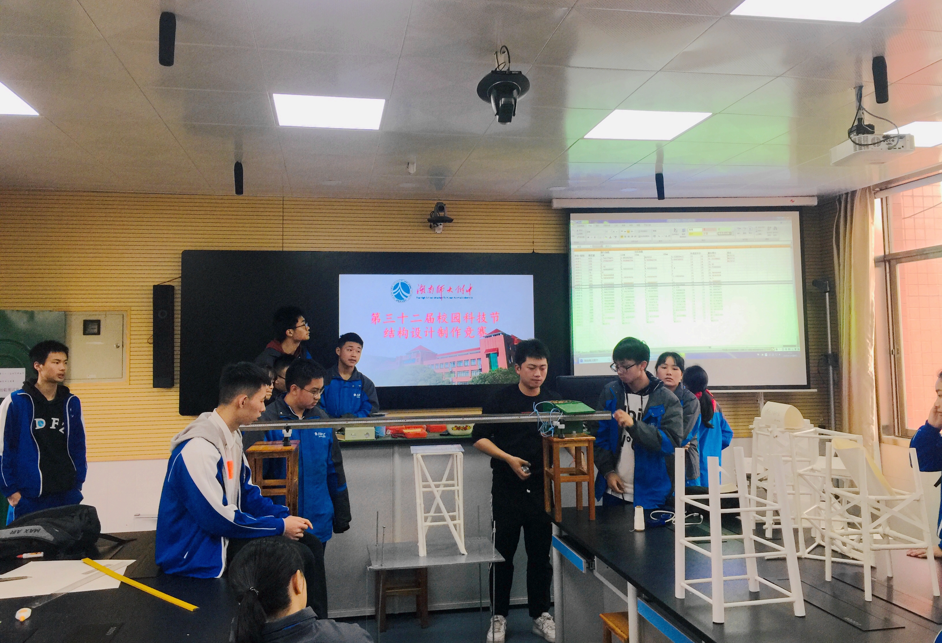 4月14日,我校第32届校园科技节之高一年级结构设计竞赛在物理数字化实验室举行。校长助理蔡任湘、科技创新处副主任蔡忠华、物理教研组长彭知文以及高一年级各班代表队100余人参加了此次活动。