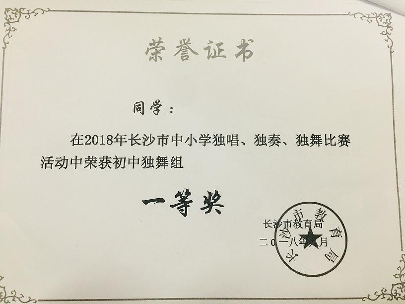 我校舞蹈节目《不想说再见》荣获长沙市中小学生艺术展演一等奖第一名