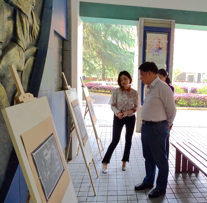 4月24日下午,我校第16届学生社团节专场活动——“清韵”优秀书画、摄影作品展在我校名人文化广场正式开幕。党委书记黄月初、副校长陈迪勋、纪检书记李春莲、学生发展处副主任袁建光、团委书记李钊来到画展现场,和艺术组全体教师为本次作品展开展。本次参展的作品由学校的四个视觉艺术社团——动漫社、艺术设计协会、书画社、摄影社的学生创作。