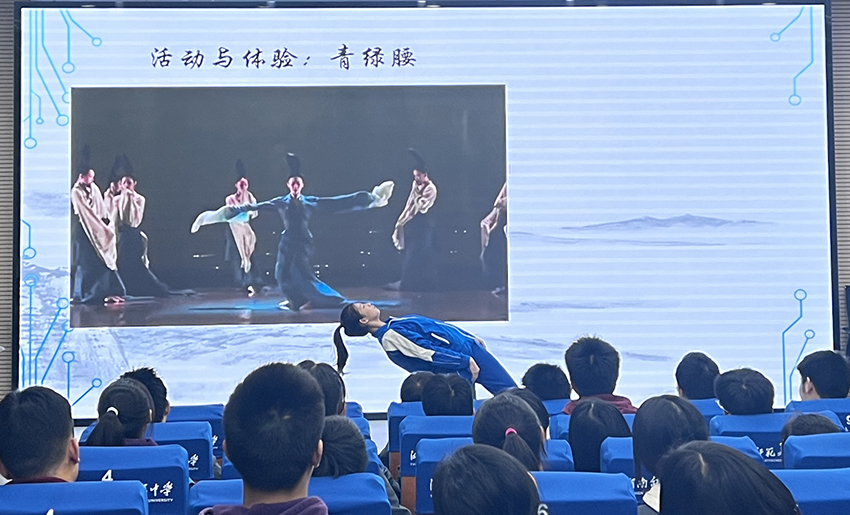 本节研讨课由音乐备课组熊康老师执教,该课程体现了舞蹈、音乐、美术、文学等多种艺术形式的高度融合,让学生充分感受了舞蹈诗剧《只此青绿》带来的古典形态美和民族自豪感,课程内容丰富,学生参与体验积极度高。