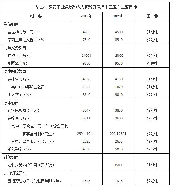 全民终身学习机会进一步扩大。形成更加适应全民学习、终身学习的现代教育体系,现代职业教育体系更加完善。学前教育机会显著增加,义务教育普及成果进一步巩固提升,普及高中阶段教育,高等教育发展进入普及化阶段,继续教育参与率明显提升,学习型社会建设迈上新台阶。