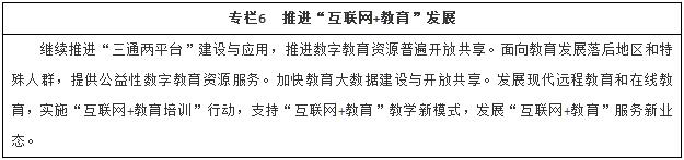 全力推动信息技术与教育教学深度融合。建设课程教学与应用服务有机结合的优质在线开放课程和资源库,全面推进“优质资源班班通”,鼓励教师利用信息技术提升教学水平、创新教学模式,利用翻转课堂、混合式教学等多种方式用好优质数字资源。深入推进“网络学习空间人人通”,形成线上线下有机结合的网络化泛在学习新模式。引导学校与教师依托网络学习空间记录学生学习过程,进行教学综合分析,创新教学管理方式。鼓励学校利用大数据技术开展对教育教学活动和学生行为数据的收集、分析和反馈,为推动个性化学习和针对性教学提供支持。支持各级各类学校建设智慧校园,综合利用互联网、大数据、人工智能和虚拟现实技术探索未来教育教学新模式。鼓励高等学校基于互联网开展学历与非学历继续教育。