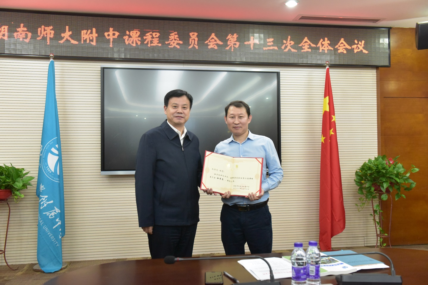 首先,谢永红宣读学校文件《关于成立湖南师范大学附属中学第二届课程委员会的通知》,并向各位委员颁发聘书。