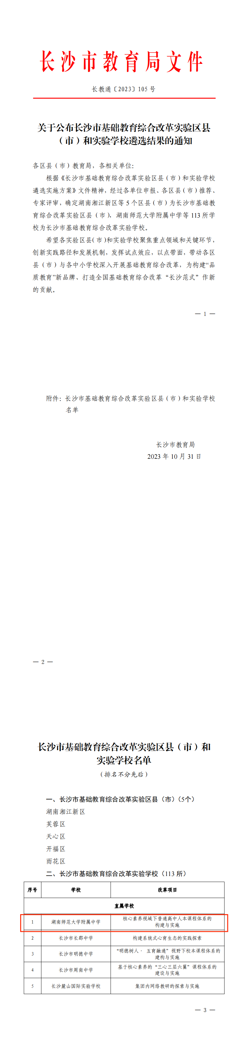 此次实验学校建设旨在聚焦重点领域和关键环节,创新实践路径和发展机制,发挥试点效应,以点带面,带动各区县(市)与各中小学校深入开展基础教育综合改革,为构建“品质教育”新品牌、打造全国基础教育综合改革“长沙范式”作出新的贡献。