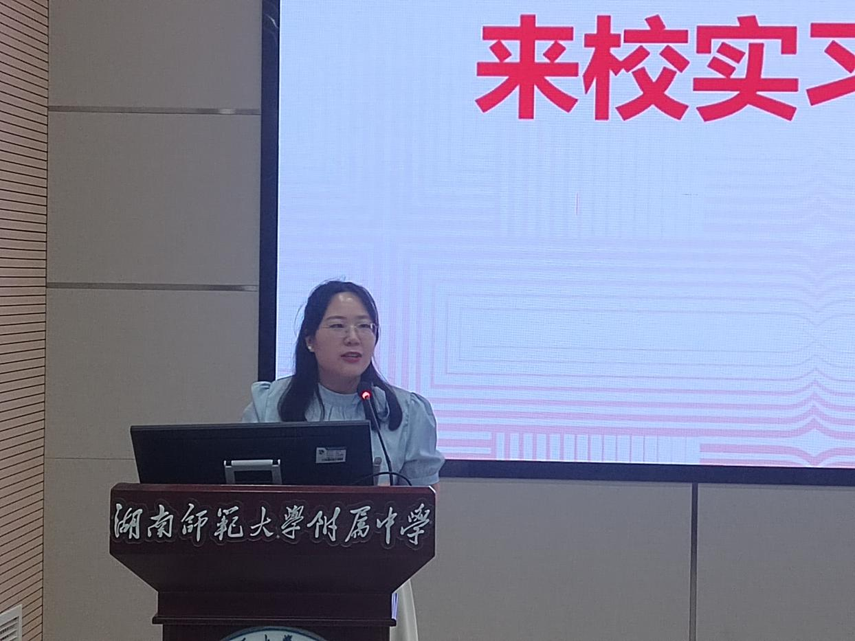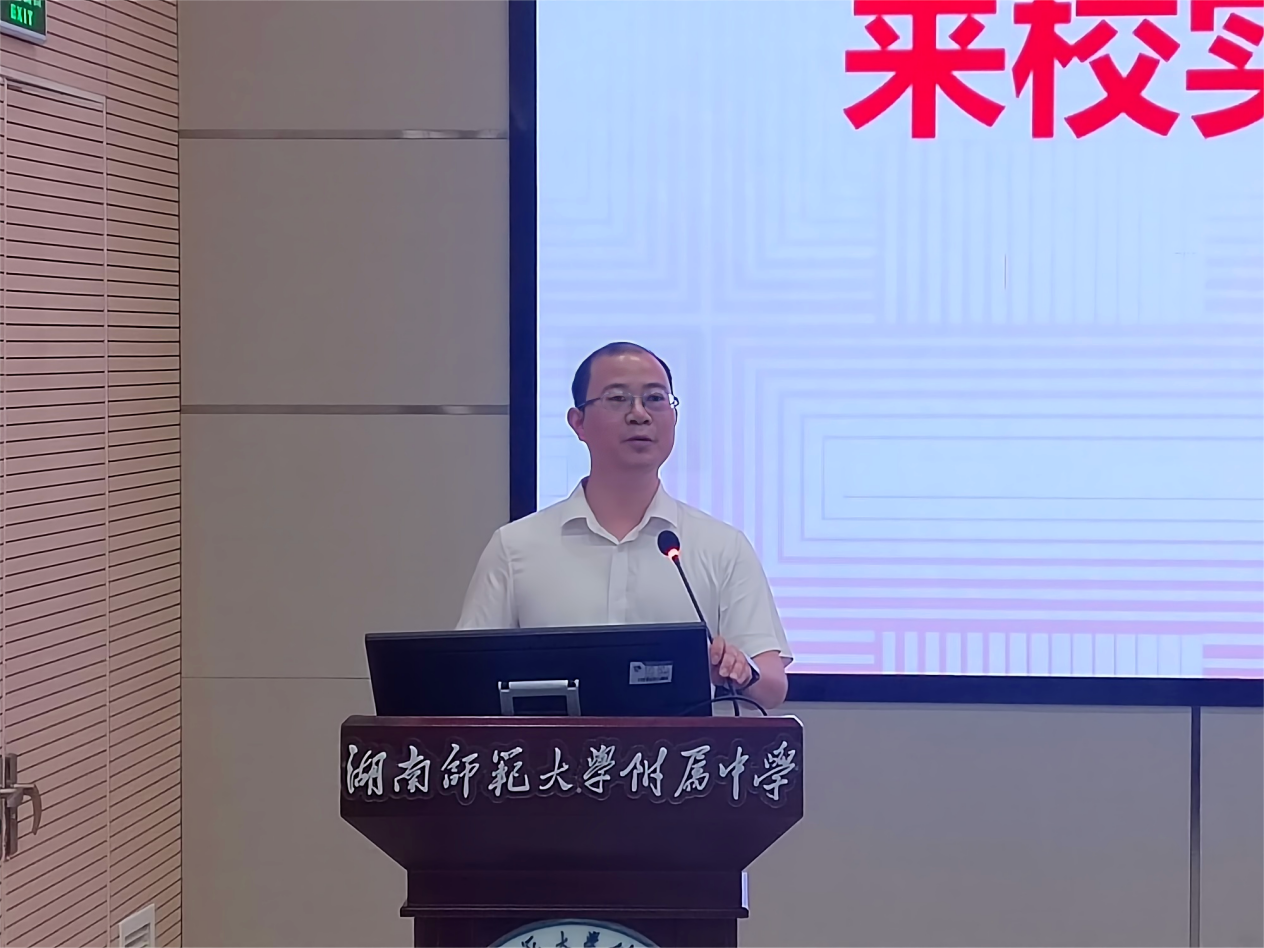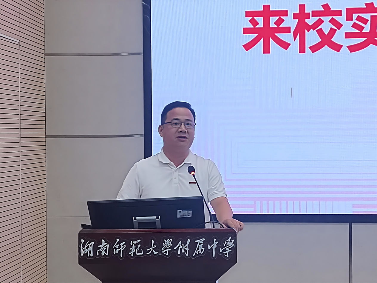 苏建祥副校长热情欢迎各实习队的到来。他首先强调本次实习规模空前,参与高校以及实习人数都达到了前所未有的水平,接着简要介绍了学校的历史沿革、办学环境、办学成绩及对湖南省内的教育落后地区学校的教育帮扶情况,并向实习老师和指导教师提出殷切期望:要响应习近平总书记“朝着建成教育强国战略目标扎实迈进”的号召,围绕立德树人根本任务,践行教育家精神。珍惜此次难得的实习机会,保持虚心学习的态度,向富有经验的指导教师请教,并严格遵守实习规范,展现师范生的良好风貌。希望指导老师以高标准、严要求悉心指导,与实习老师共同进步。