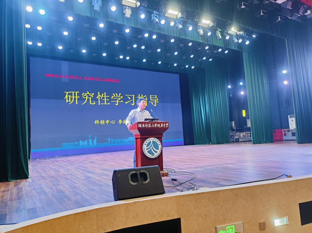 科技创新中心李湘黔老师以《研究性学习指导》为题进行讲座,他通过生动、丰富的研究成果案例,详细解析了研究性学习的组织形式和学习过程,给予了同学们细致的指导。讲座中展示的历届科技创新大赛中学校获奖的研究成果,为同学们创造了更广阔的思考空间,激发了同学们浓厚的兴趣。