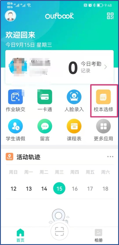 (三)登录后,点击“校本选修”,进入校本课程选课界面;