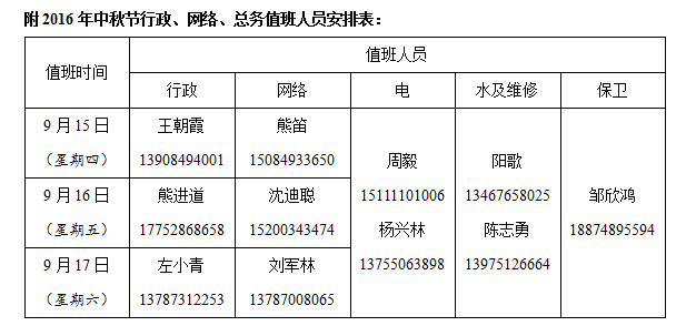 2016年中秋节放假通知