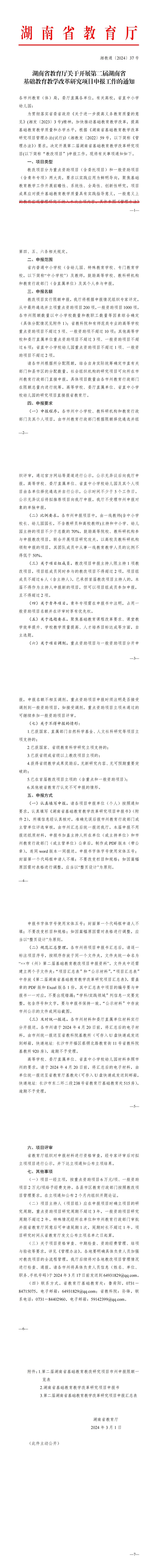 新闻中心 附中新闻 通知公告 最新动态 教育视点 集团学校新闻联播 媒体聚焦 工作安排 微信附中 关于开展第二届湖南省基础教育教学改革项目申报工作的通知 发布:系统管理员 来源:未知 日期:2024-03-04 人气:分享到: 附件2:第二届湖南省基础教育教学改革项目申报书 上一篇:湖南师大附中2023-2024学年度第二学期开学工作安排 下一篇:关于举办湖南省教育科学研究工作者协会2024年优秀论文评选活动的通知 通知公告 更多 湖南师范大学附属中学食堂物资供 湖南师范大学附属中学2024年门面 2024年湖南师大附中桐梓实验中学 湖南师范大学附属中学2024年公开 湖南师范大学附属中学化学实验室 湖南师范大学附属中学2024级七年 最新动态 更多