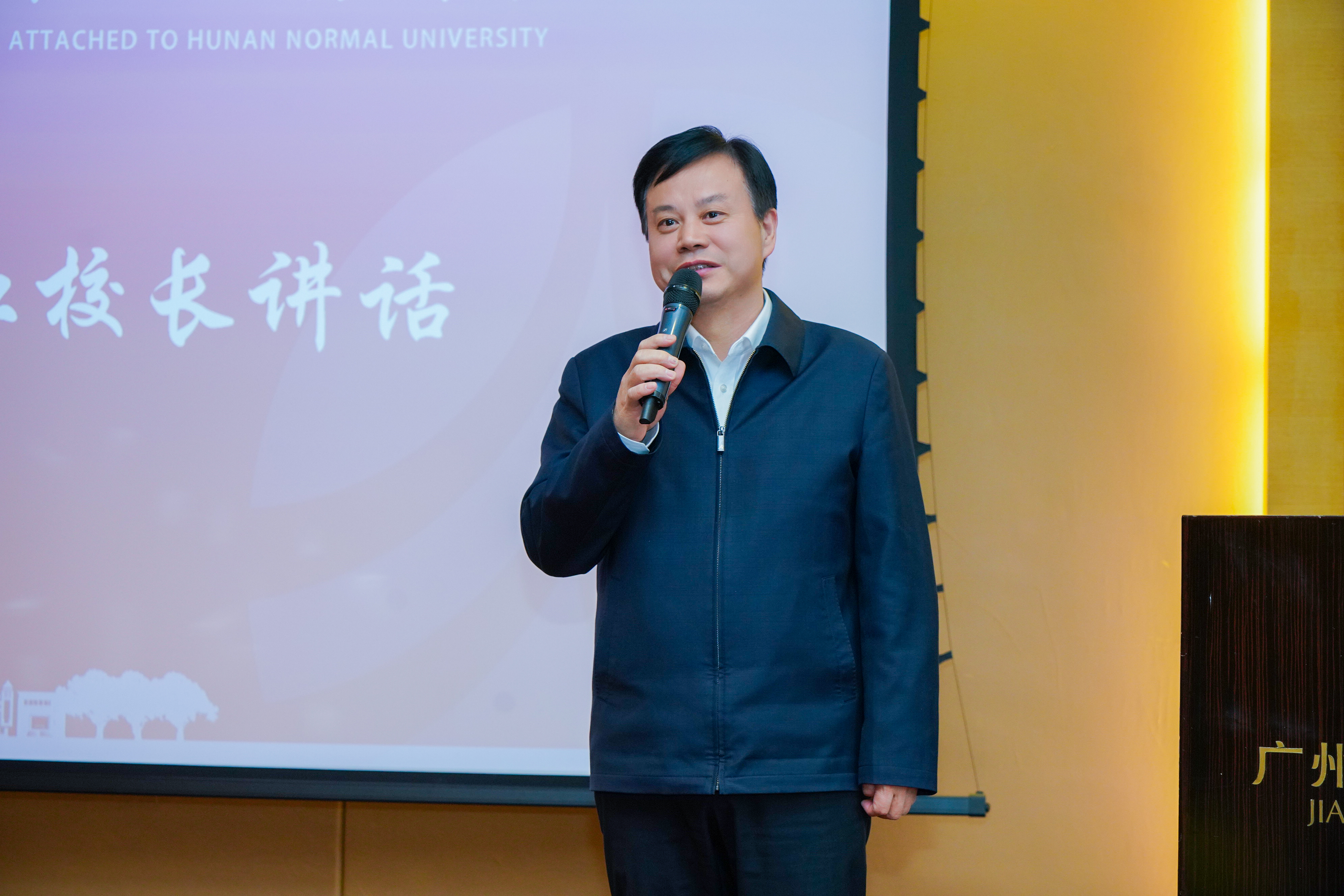 北京、香港、长沙校友会对广州校友会年会的召开表示庆贺,并对广州校友会新一届班子的组成表达良好祝愿,同时表示各地校友会要加强互动交流,共同创新发展,携手为母校增光添彩。湖南师范大学附属黄埔实验学校作为湖南师大附中大家庭的一员,从2022年9月正式在广州成立办学。该校杜军校长向与会领导与校友介绍了学校办学历程、办学特色和一年多来取得的成绩,并欢迎广州校友送儿女、孙辈前来报读该校,让在广州的校友后辈不出省就能够成为“附二代”“附三代”,此承诺极大地鼓舞了在座的广大校友们。
