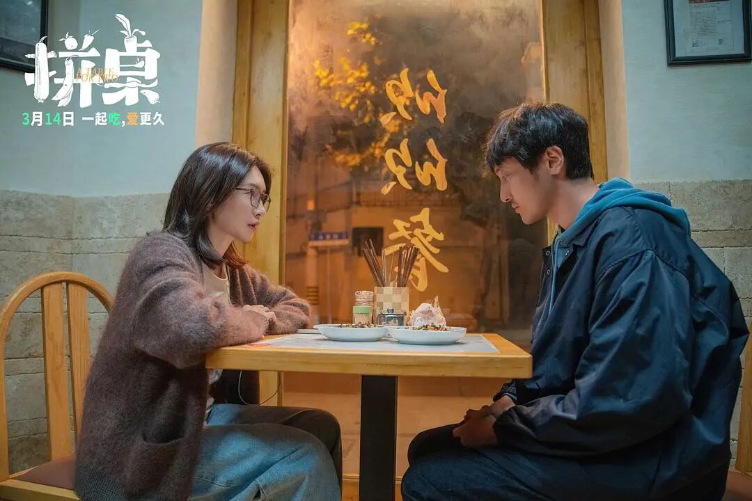 李雪琴饰演三三的原型,来自导演上一个未成型的项目里写的“声音搭子”。“我有个朋友,和一个男孩只通过声音陪伴,晚上回家各自打开麦,对方家里电视的声音、炒菜的动静,都能互相听见,就这么陪着彼此,但他们物理距离只有3公里,却从来没见过面。”吴靖坦言,这段关系让她格外触动,“你能清晰地感受到当代大都市年轻人的那种孤独感,还有对亲密关系的谨慎,甚至是恐惧,以及刻在骨子里的界限感。这和饭搭子是完全对应的关系,都是都市里独有的、轻量的陪伴,我觉得一定要把它放进故事里。” 事实上,《拼桌》最动人的地方,在于它对都市人情感的细腻捕捉。陆拾谷与张嘉怡在一餐一饭里慢慢靠近,有心动、有暧昧,却始终发乎情止乎礼,没有轰轰烈烈的告白,也没有非黑即白的道德评判,只呈现了一段流动的、真实的、属于当代都市人的情感关系。 “我从来没把他们的关系定义成传统意义上的爱情,他们更多的是彼此治愈、彼此陪伴、共同成长。这里面肯定有暧昧的心动,但两个人始终守住了自己的边界——张嘉怡会给陆拾谷看拼桌记录,甚至告诉他自己男朋友的电话,她在提醒对方的同时,也是在提醒自己;而陆拾谷也会主动后退一步,不想给对方的感情造成困扰。”在吴靖看来,人性与情感从来都不是非黑即白的,文艺创作最该做的,是直面真实的内心。《拼桌》不是传统的青春纯爱片,其中有不少成年人面对情感关系时的犹疑,有游走在暧昧与陪伴之间无法定义的一些微妙分寸,这些在生活中并不少见的情愫,也是过往华语电影鲜少捕捉到的情感状态。