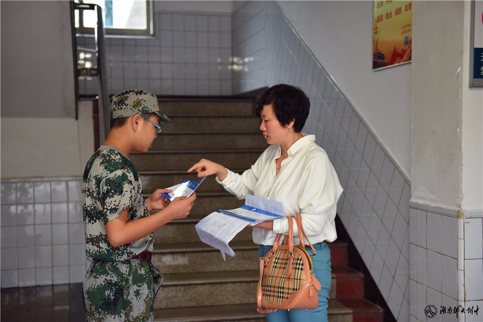 学生发展处主任郭在时、年级组长袁建光在有条不紊地安排开营事宜。
