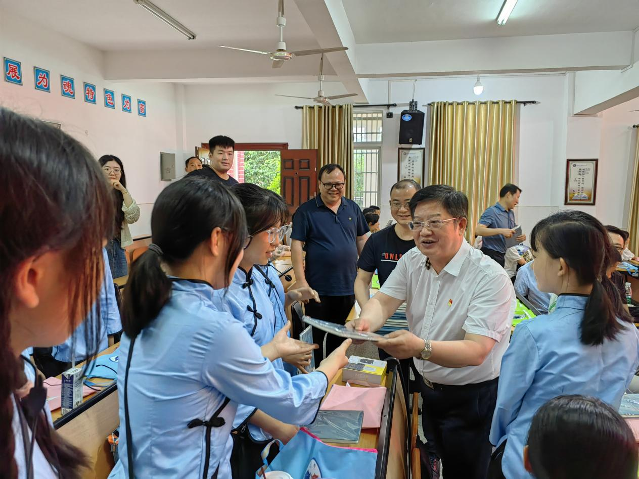 本次主题党日恰逢第74个国际儿童节,大家来到开慧小学给孩子们送上节日的祝福,黄月初校长代表学校向开慧小学师生捐赠图书和文创礼品。开慧小学的小讲解员们与党员同志们讲述了开慧小学的校史,深情回顾了杨开慧英勇就义的壮举以及毛泽东给杨开慧写的动人诗篇,学生社团和大家一起合唱红色歌曲,诵读红色革命诗词。