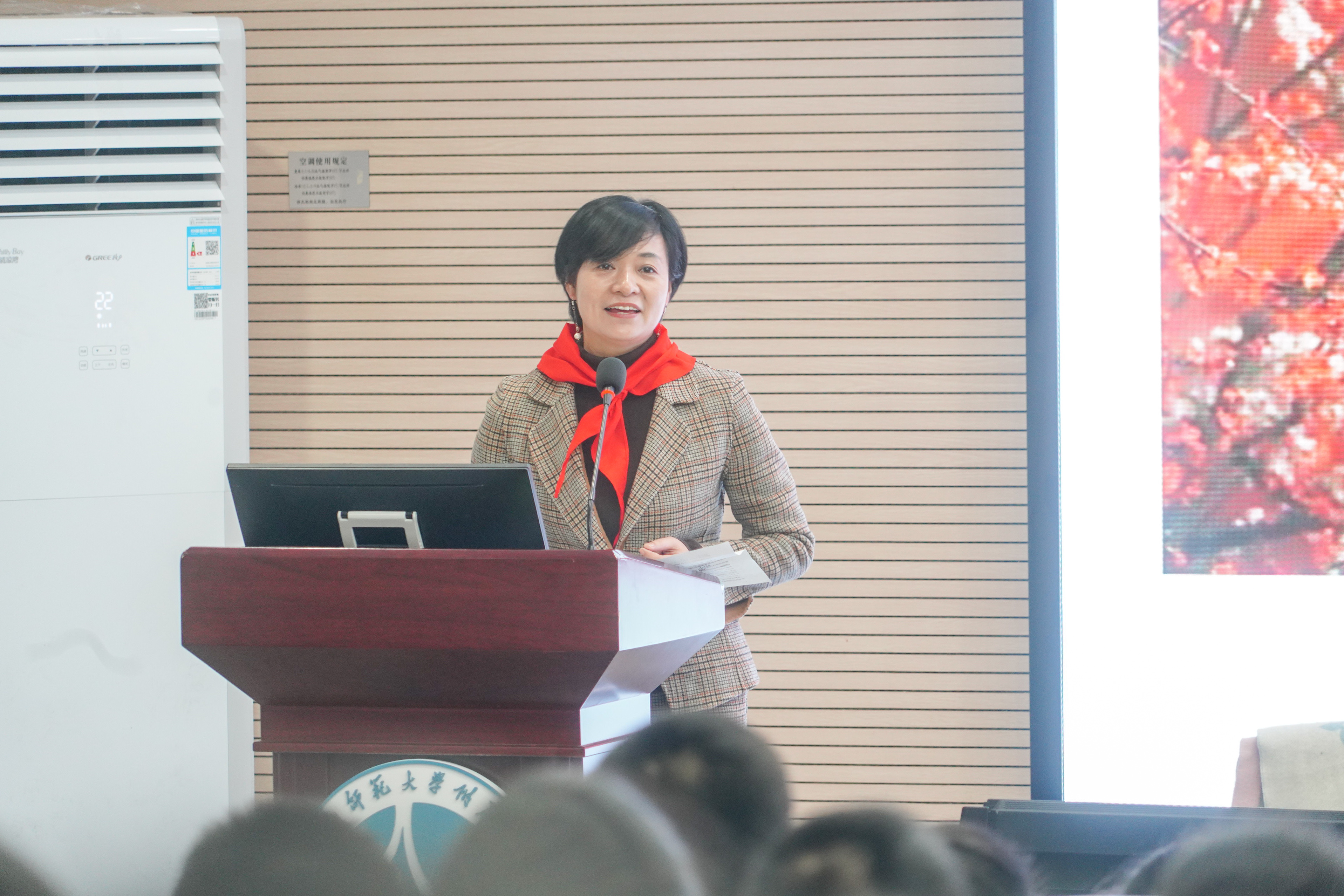 3月9日,学校之谟图书馆会议厅里余音袅袅,激情洋溢,纪检书记李春莲老师为七年级的孩子们带来一堂名为“传唱红色经典,争做时代新人”的思政课。