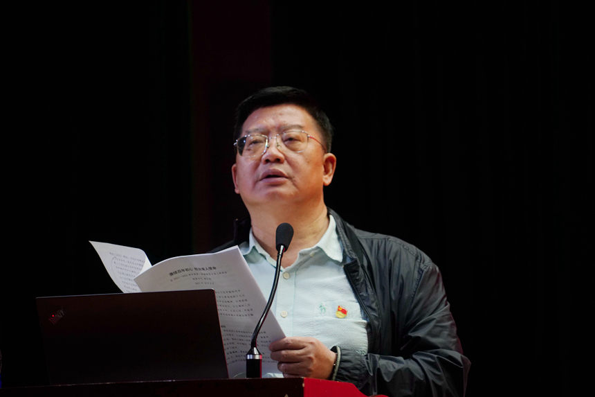 党委书记黄月初以《接续奋斗、努力作为、迈向复兴》为报告主题,从百年辉煌、建党精神、接续奋斗、真抓实干为脉络,分享学习习近平总书记“七一”重要讲话精神心得。辅导报告中,他将百年党史的四个时期特点总结为站起来、发展起来、富起来、强起来,中华民族伟大复兴从而进入了不可逆转的历史进程!