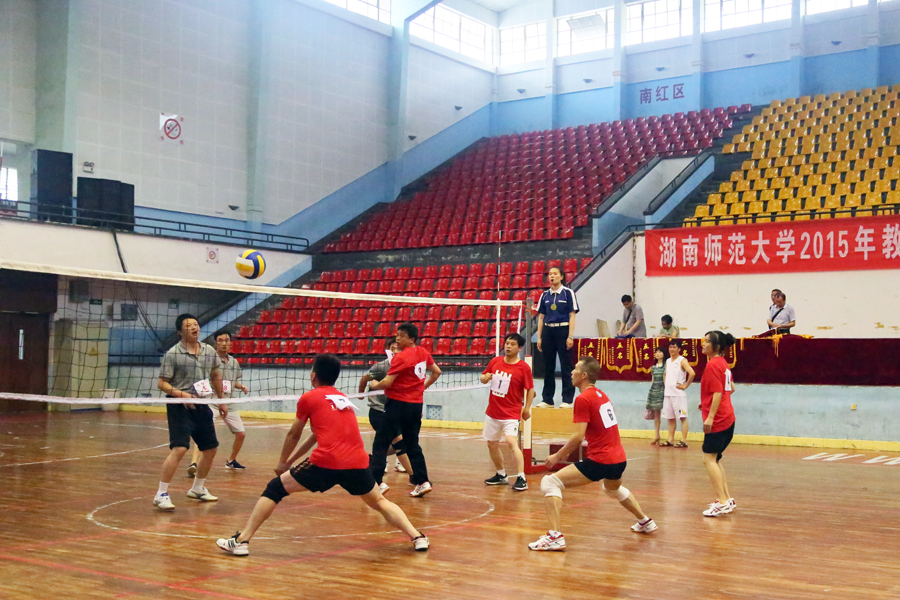 为构建特色校园文化,丰富教职工的业余生活,促进各院系间教职工的交流,增强教职工体质和健康意识,提高体育竞技能力,弘扬重在参与、永不放弃、永不气馁、永不低头的体育精神,湖南师范大学工会组织开展了院系间的气排球比赛。