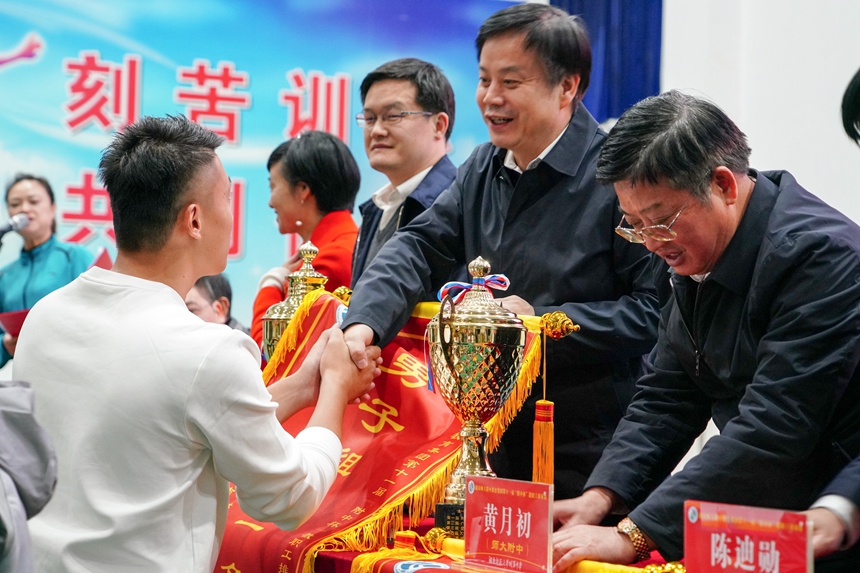 经激烈比拼,男队团体前三名分别为湖南师大附中博才实验中学、湖南广益实验中学、湖南师大附中本部。女队团体前三名分别为:湖南师大附中、湖南师大附中博才实验中学、湖南广益实验中学。经每场比赛裁判员严格统计,最终获个人奖名单如下:最佳防守:周景绩(男队)、王文秀(女队)、最佳扣球:戴辰(男队)、王恋(女队),最佳拦网:喻梵(男队)、最佳拦网:陈蓉蓉(女队)、最佳发球:房旭(男队)、最佳发球:张露露(女队)、最佳二传:汤彬(男队)、最佳二传:张婷婷(女队)、最佳球员:曹国杰(男队)、最佳球员:徐柳(女队)。在场领导分别为获奖代表队和获奖个人颁奖并合影留念。