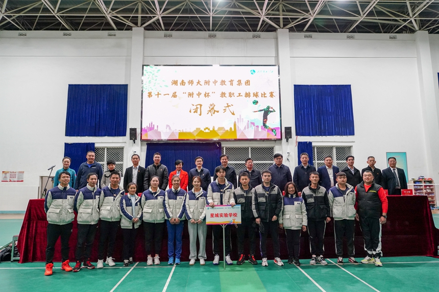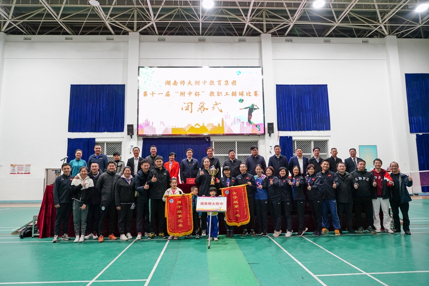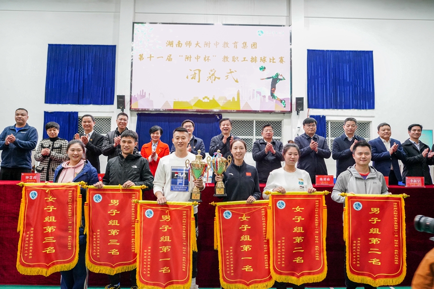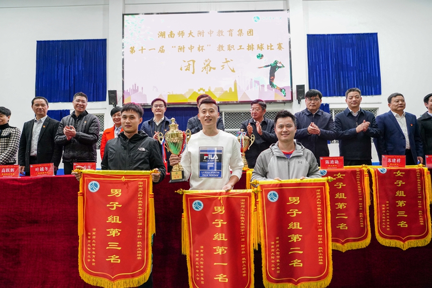 黄月初宣布湖南师大附中教育集团第十一届“附中杯”教职工排球赛圆满闭幕。