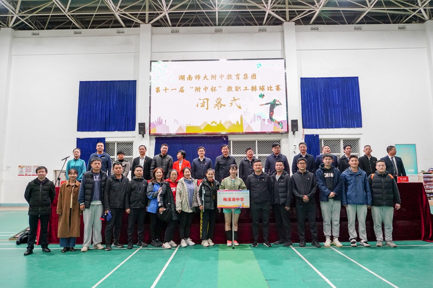11月10日晚,湖南师大附中教育集团第十一届“附中杯”教职工排球赛闭幕式在体育馆举行。校长谢永红,党委书记黄月初,党委副书记彭荣宏,副校长兼工会主席陈迪勋,纪检书记李春莲,副校长苏建祥和各集团校书记出席,14支代表队运动员一百余人参加了闭幕式。仪式由工会副主席谭伟主持。