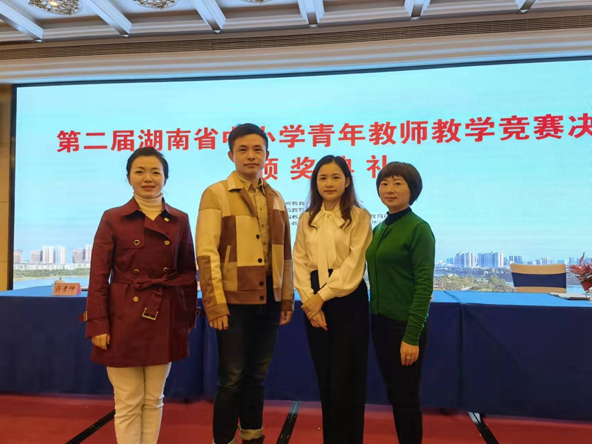 10月18日,由湖南省教育厅、湖南省总工会联合主办的第二届湖南省中小学青年教师教学竞赛在衡阳圆满闭幕。来自全省省直队和14个州市的148名青年教师展开激烈角逐。我校闵娟、吴浩、游淑雲、陈莎筠四位老师,作为省直队中高中语文、高中数学、高中政治和初中英语四个科目代表凭借扎实的专业功底、独具匠心的教学设计、灵动自如的教学展示以及创新而有深度的教学阐释均获得各学科二等奖,并均被授予“湖南省教学能手”称号,开创参赛学校获奖记录最多的记录。在此,向关心、帮助和支持此次参赛活动的领导和老师表示感谢!