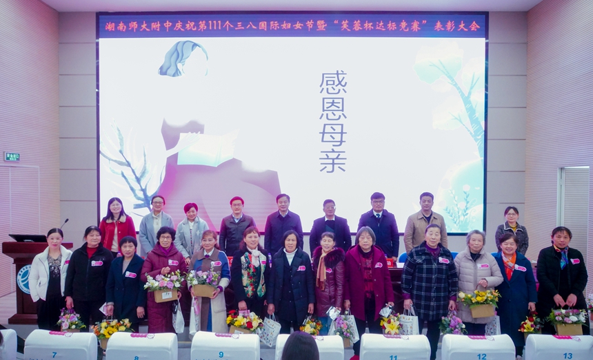 8日下午,学校召开以“学习先进,感恩母亲”为主题的“芙蓉杯”达标竞赛表彰大会。校长谢永红,党委书记黄月初,党委副书记彭荣宏,工会主席兼副校长陈迪勋,纪检书记李春莲,副校长苏建祥出席了活动。活动由女工委主任唐海燕老师主持。