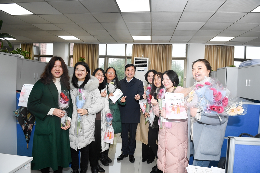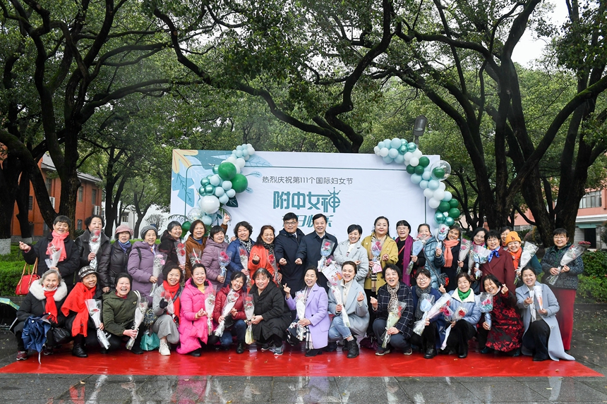 为丰富女教职工业余生活,活跃校园文化气氛,学校开展了一系列庆祝第111个“三八”国际妇女节的活动。3月8日上午,女教职工们以及部分教职工母亲、离退休女教职工在攀登广场活动场地打卡留念、领取礼物庆祝节日。校领导们分组到教学楼等处对女教职工们进行慰问,“女神”们感慨:在附中工作很幸福!