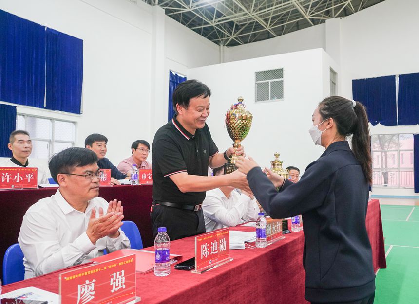 11月17日晚20:30,闭幕式如期举行。校长谢永红,副校长兼工会主席陈迪勋,纪检书记李春莲,副校长苏建祥,党委委员廖强,各集团校、友好校党组织书记及裁判长申宝磊等出席。仪式由工会体育委员汤彬主持。工会副主席伏炎安作比赛总结,他介绍本届比赛累计80场次,具有领导高度重视、组织严密充分、比赛精彩纷呈等三大特点。裁判长申宝磊宣布比赛成绩,男子团体前六名分别为湖南师大附中、湖南师大附中博才实验中学、湖南师大附中雨花学校、长沙市华益中学、湖南师大附中梅溪湖中学、湖南师大附中高新实验中学,女子团体前六名依次是湖南师大附中、湖南师大附中博才实验中学、湖南师大附中星城实验学校、湖南师大附中梅溪湖中学、长沙市华益中学、湖南师大附中星沙实验学校。随后,谢永红校长向男女冠军队授奖杯,校领导向男女队前六名授锦旗。谢永红宣布湖南师大附中教育集团第十二届“附中杯”教职工排球赛圆满闭幕。