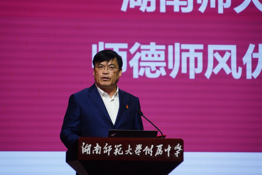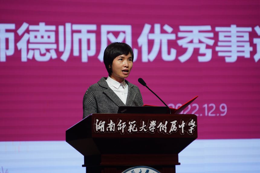 高三语文备课组长刘芳以《平凡的坚守》为题,定位自己是万千教师中最平凡的一个和三尺讲台上最普通的一员,以自己从容、平常的姿态诠释了最美的坚守。高三文科班班主任王丹分享了《爱是最好的教育方法》:以爱为法,爱而有法,爱无定法,想方设法,以灵魂唤醒灵魂,以春晖感化寸草。外派耒阳支教三年的欧阳红英作《用爱浇灌 静待花开》报告,她从教26年,用心上好每一堂课,育得桃李芬芳;支教3年,用爱浇灌老区孩子们的心田。教育教学服务一线多面手姜平贵讲述了《爱岗敬业铸师魂 三尺讲台守初心》,他是长期战斗在教育教学一线的平凡教师,勤勉奉献于学校发展大局的岗位标兵。初中部党支部书记、九年级班主任陈莎筠以《不忘初心扬师德 立德树人铸师魂》为题,她杏坛耕耘16载,爱岗敬业铸师魂,种好育人责任田。
