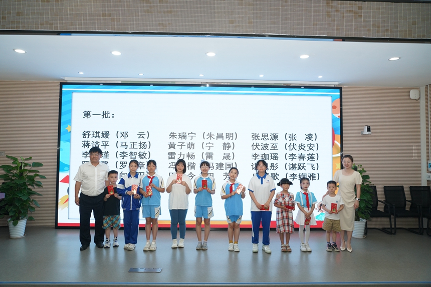 表彰大会在学校图书馆报告厅举行,由学校团委副书记温宇主持。首先,蔡卫红致辞,她赞扬了“附二代”们的优异表现和出色成绩,祝福他们幸福成长;陈迪勋与孩子们激情互动,从做人、求学和生活等方面,勉励孩子们讲礼貌、好好学习、好好吃饭、好好锻炼,全面发展,争做祖国的栋梁之材。李春莲带领孩子们在《挖呀挖呀挖》《小老鼠上灯台》《拍手歌》等游戏中放肆嗨了一番。随后,伏炎安宣读获奖名单,并对获奖的小朋友们表示祝贺;接着,关工委领导门为孩子们颁发了奖金,118名小朋友获得了奖励,并愉快地与颁奖嘉宾合影留念。