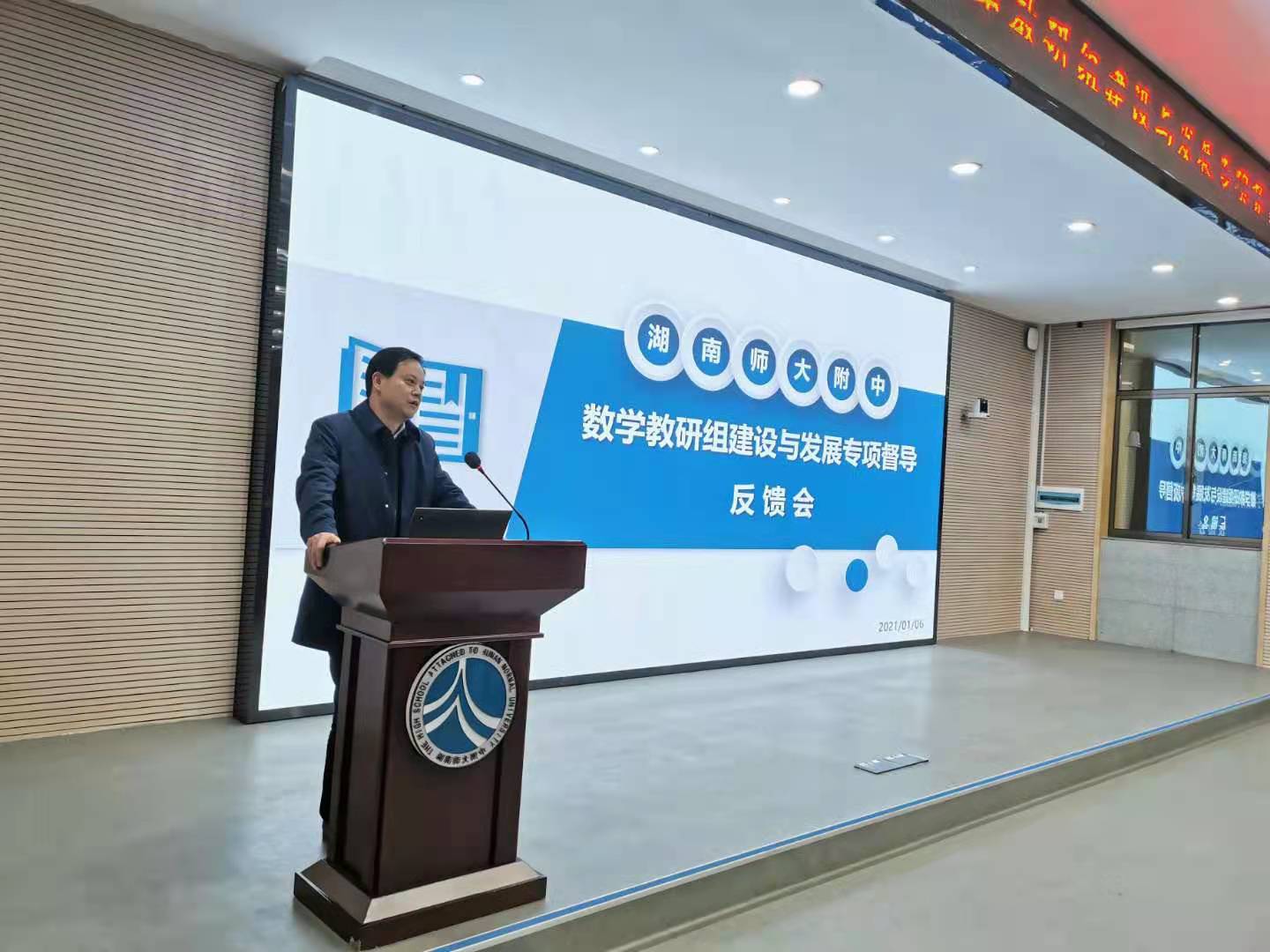 谢永红校长在反馈会上作了重要讲话。他全程参与了此次督导活动,认为通过此次督导使学校对数学教研组的发展现状有了更为全面的了解,并征集到许多宝贵的建议。他认为,在新年的第一周,学校就布署此项重大活动,充分体现了学校对督导工作的重视和对数学组的重视。谢校长充分肯定了数学教研组所取得的成绩,也客观地指出了数学教研组存在的问题。他强调要充分发挥教育督导监督检查、评估诊断、总结推广、促进整改的功能和价值,希望数学教研组勇于正视督导过程中发现的问题,始终聚焦研究型高中建设目标,努力把数学教研组建设得更加美好。
