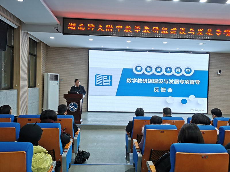 6日下午2:30,在图书馆报告厅召开了本次专项督导初步反馈会。校长谢永红、党委书记黄月初、副校长陈迪勋、纪检书记李春莲、副校长苏建祥及多个部门的负责人出席了会议。数学教研组全体教师参加了会议并认真听取了反馈意见。会议由黄月初书记主持。