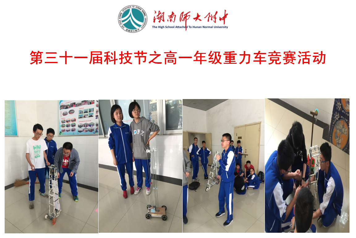 校长助理、科技创新处主任蔡任湘,学生发展处副主任吴卿出席了活动,此次竞赛活动邀请了物理教研组彭知文、邓放明、马顺存、王超老师担任评委,参赛班级班主任到现场指导,50余名同学到现场观摩。8个班级代表队参加角逐,各代表队共同设计、制作重力车并操作重力车比赛,整个比赛过程精彩纷呈。 最后,根据参赛车辆的高度、砝码重量、设计理念、制作工艺以及车辆移动的距离等评价指标,评委们做出综合评价,评选出一、二、三等奖。1719班、1702班荣获一等奖,1715班、1716班荣获二等奖,1704班、1703班、1708班、1707班荣获三等奖。
