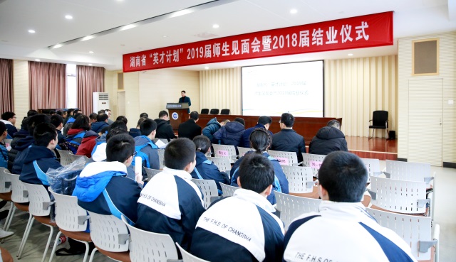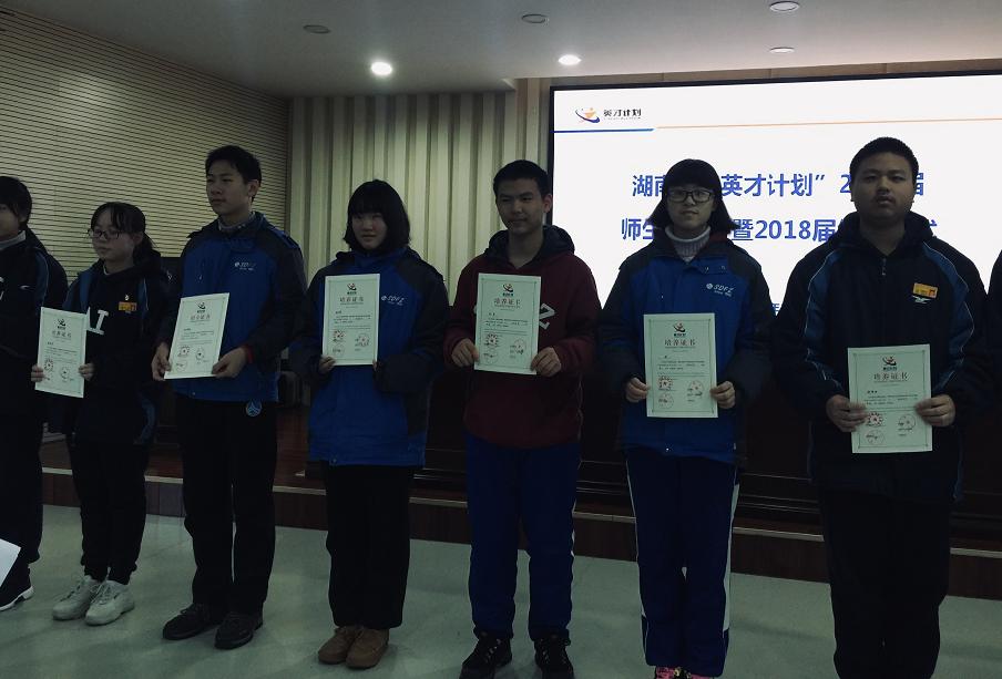 “英才计划“工作是以习近平新时代中国特色社会主义思想为统领,全面落实立德树人根本任务,按照科协“1-9-6-1”工作布局总体要求,认真贯彻落实英才计划专家咨询委员会第五次全体会议精神。在各学科工作委员会的积极推动下,在各参与高校和省级管理办公室的密切协同下,湖南省“英才计划”2019届师生见面会暨2018届结业仪式于2月24日在雅礼中学隆重举行。我校赵之阳、刘傲寒、姚栩、蒋序章同学参加了2018届结业仪式,罗涣林同学参加了2019届师生见面会。