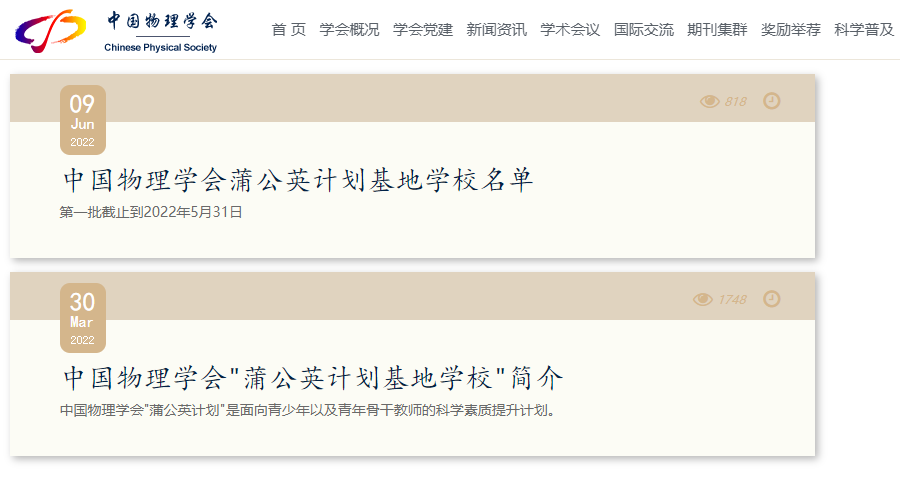 为更好地发挥"蒲公英计划"的实效,中国物理学会从2022年起在各地遴选基础条件好、科学氛围浓的中小学设立"蒲公英计划基地学校",定向免费推送优质科技科教资源。