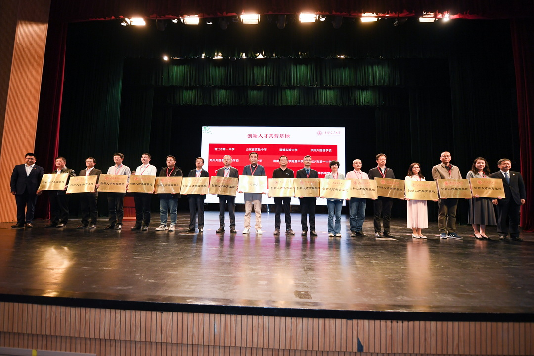 仪式上,丁奎岭、张兆国为各伙伴中学授上海交通大学创新人才培养共育基地铜牌并合影留念。后续,学校将在优质课程共建、高水平学术讲座、研学绿色通道开放、基础教育师资输送等方面,和共育基地中学深化合作。
