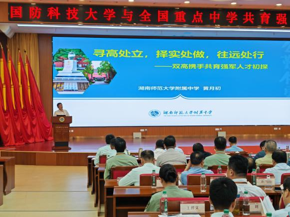 5月15日,国防科技大学与全国知名中学共育强军人才论坛会在国防科技大学隆重举行。我校校长黄月初在论坛上分享了湖南师大附中首届国防科技创新实验班的发展建设经验,并获得与会者的高度评价。