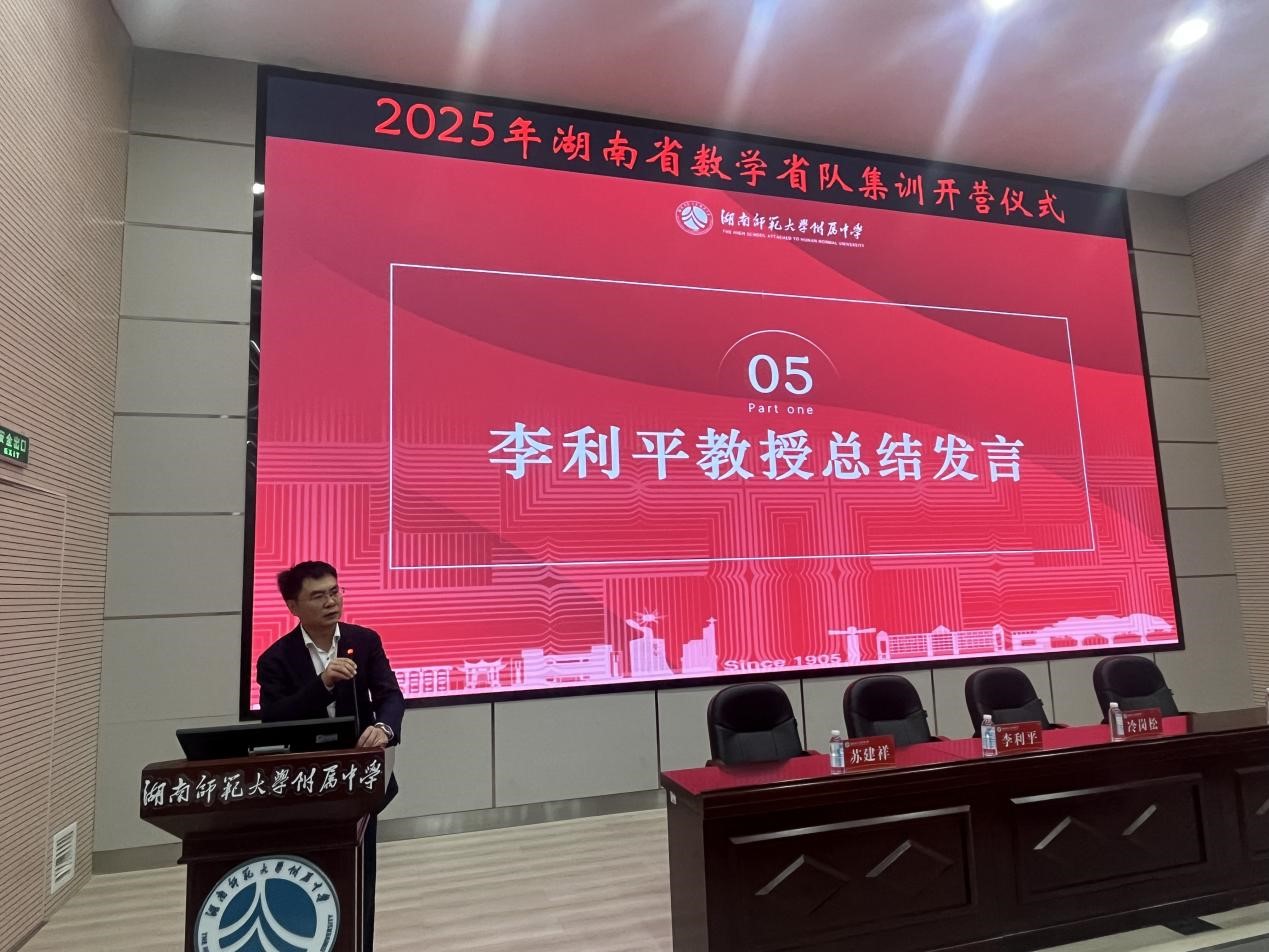 最后,李利平教授做了总结发言,他总结了湖南省的数学竞赛现状,并以此表达了对学员们在后续比赛中表现的期望;他向学员们分享了众多有过竞赛经历的数学家,期待更多的数竞生日后能从事基础数学或应用数学研究,为国家发展和人类进步做贡献,期待此次集训能为更强的湖南数学群体打下坚实基础。