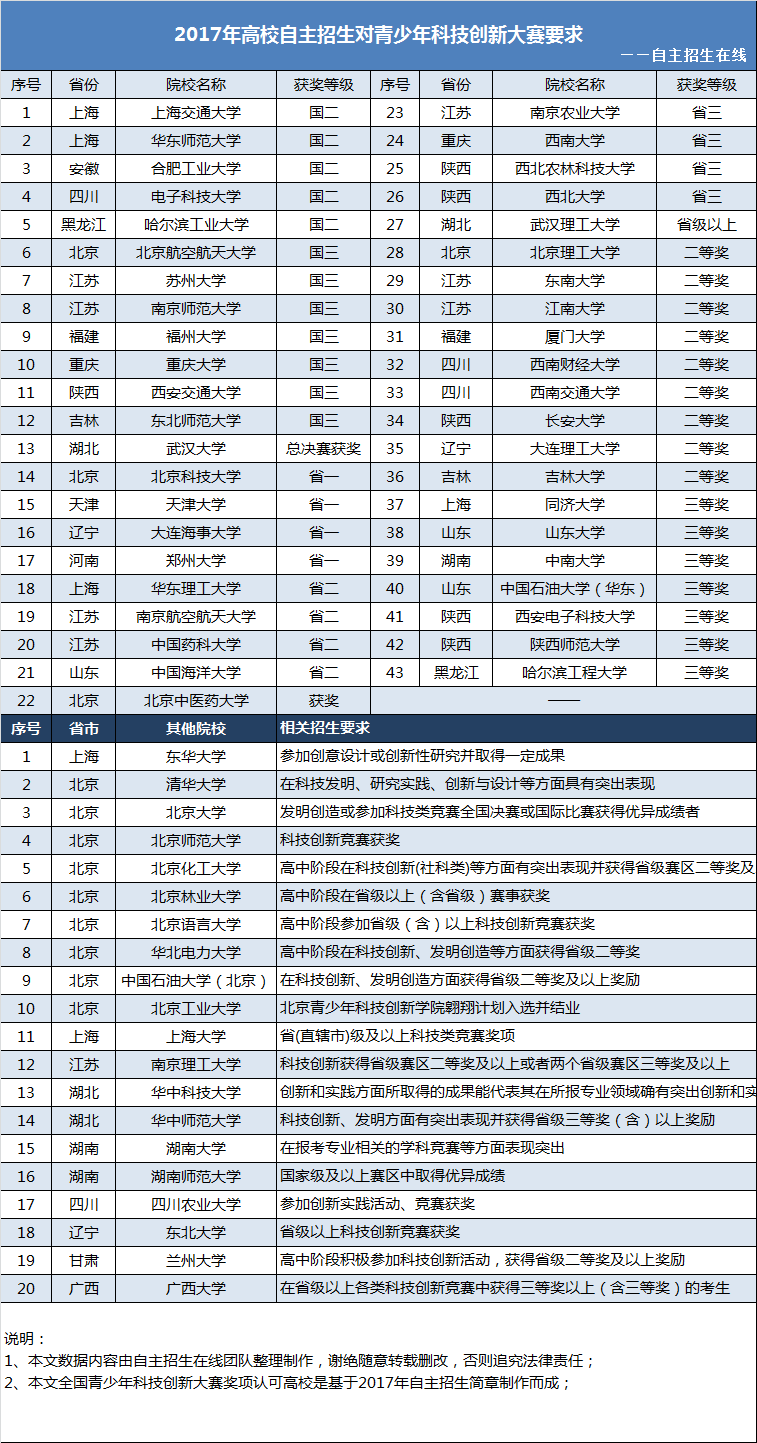 3.所有作品必须是2018年3月9日以前完成、由参赛者先详细了解参赛项目的比赛规则或活动方案、自主选择参赛项目、自主设计和研究、自己制作或撰写,并具有原创性、科学性、先进性和实用性的作品,可以主动找相关科研机构科技专家、相关学科领域的专家、教授、学校相关教研组的老师进行指导,2017-2018学年度第二学期第一周星期五(3月9日)之前将作品交至执中楼科技创新处焦畅老师处(办公楼107#)。