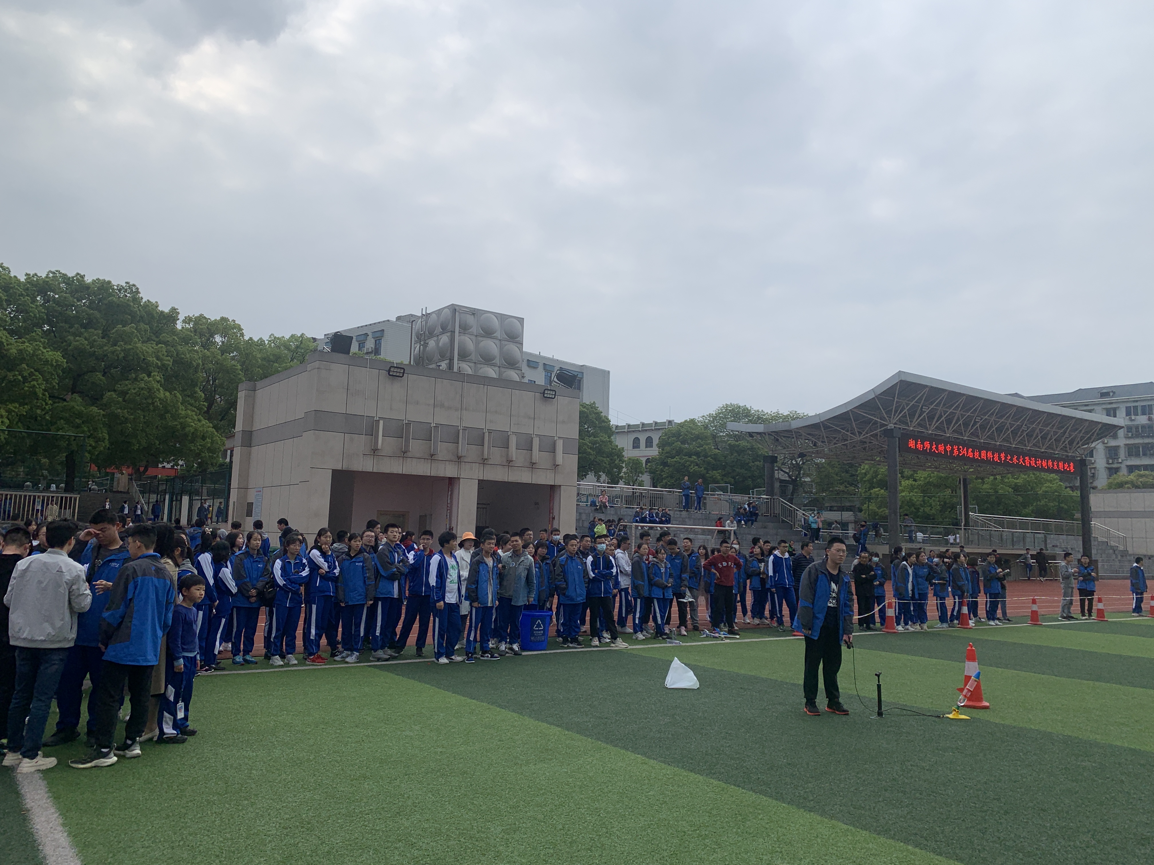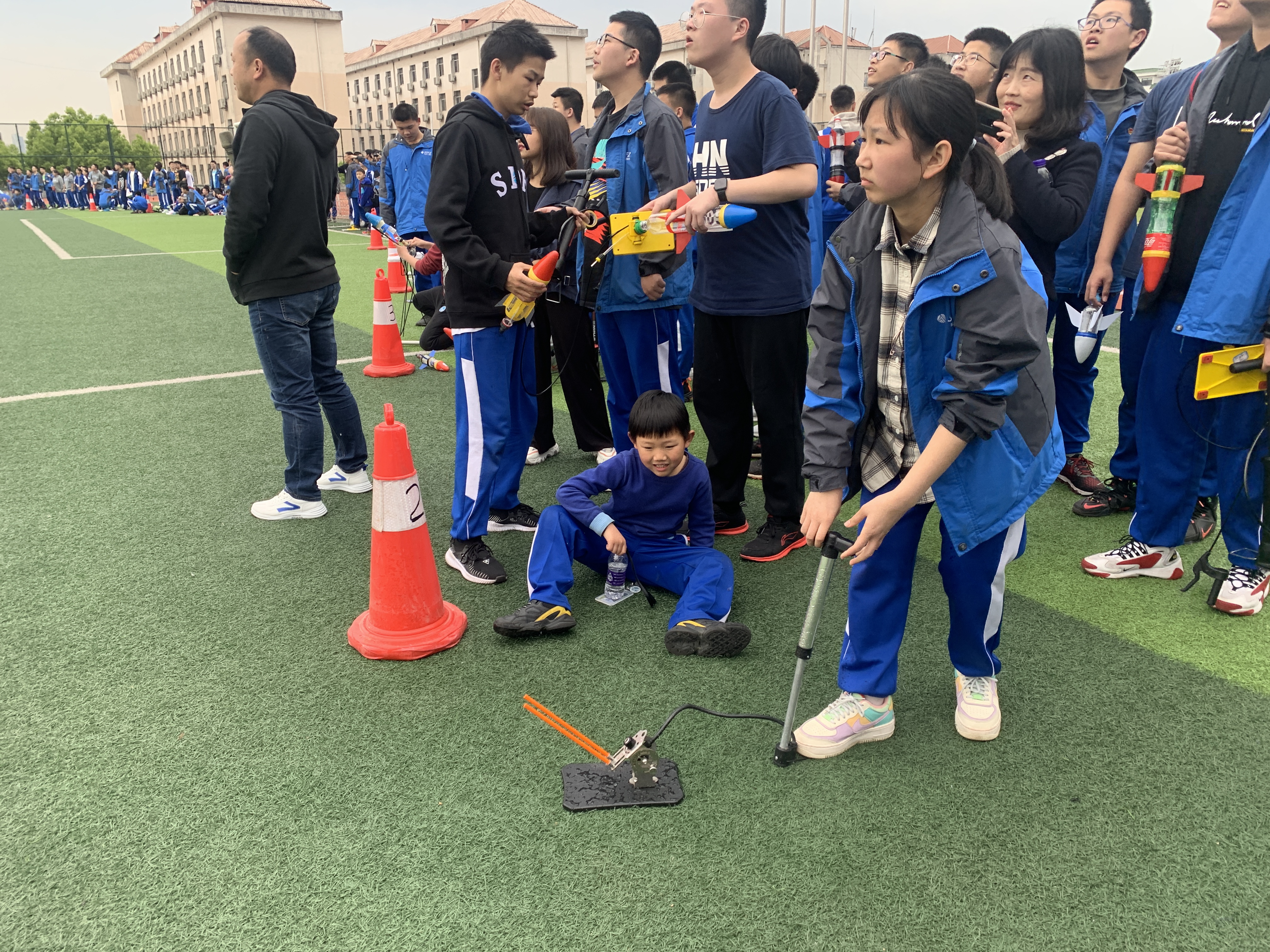 4月9日,我校第34届校园科技之水火箭设计制作发射比赛在学校田径场举行。德育与学生发展处主任吴卿、物理教研组组长彭知文、高一年级组组长王建、马顺存、唐利辉、焦畅、孙瑶、张先早、朱玮晨等老师以及高一年级全体学生共1000余人参加了此次活动。