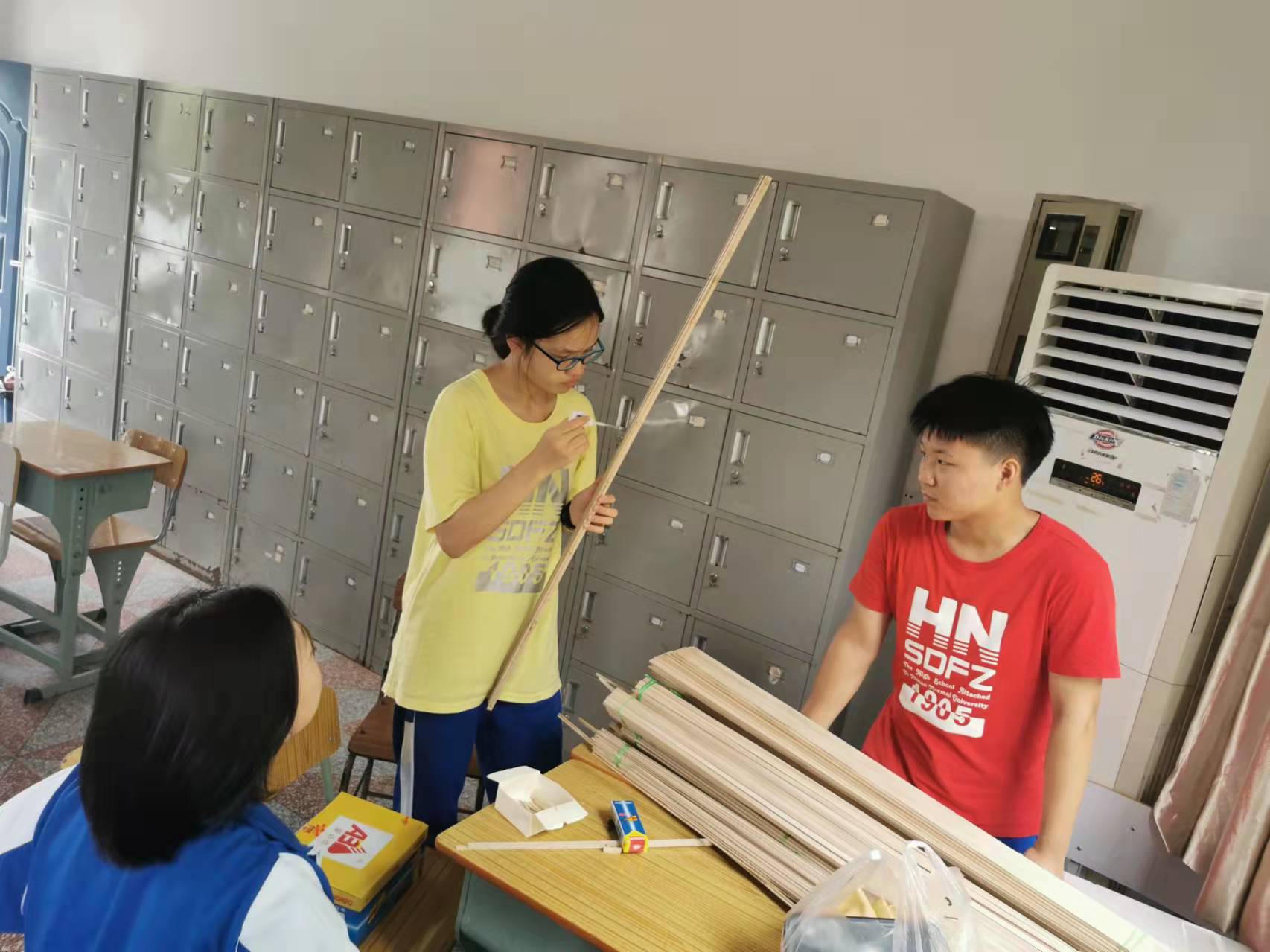 我校参赛学生提前一个月开始备赛。8月21日,我们邀请了湖南大学土木系的刘颖峰博士给学生做桥梁结构的专题讲座,随后学生开始制作第一个桥梁模型。彭楚峰同学提出拱的结构稳定,承载力较强,决定用拱支撑桥面,确定了设计方向。