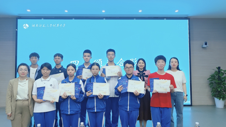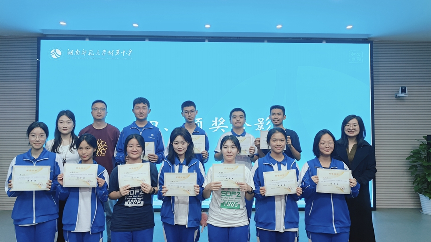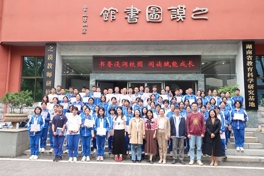 最后,江腾作总结发言。他对同学们的精彩分享表示赞赏,并鼓励大家继续深入阅读,不断拓宽视野,提升文学素养。随后,活动举行了颁奖仪式,对在阅读分享和配音大赛中表现突出的同学进行了表彰,参加阅读分享会的全体老师和学生在之谟图书馆阶梯处合影留念。